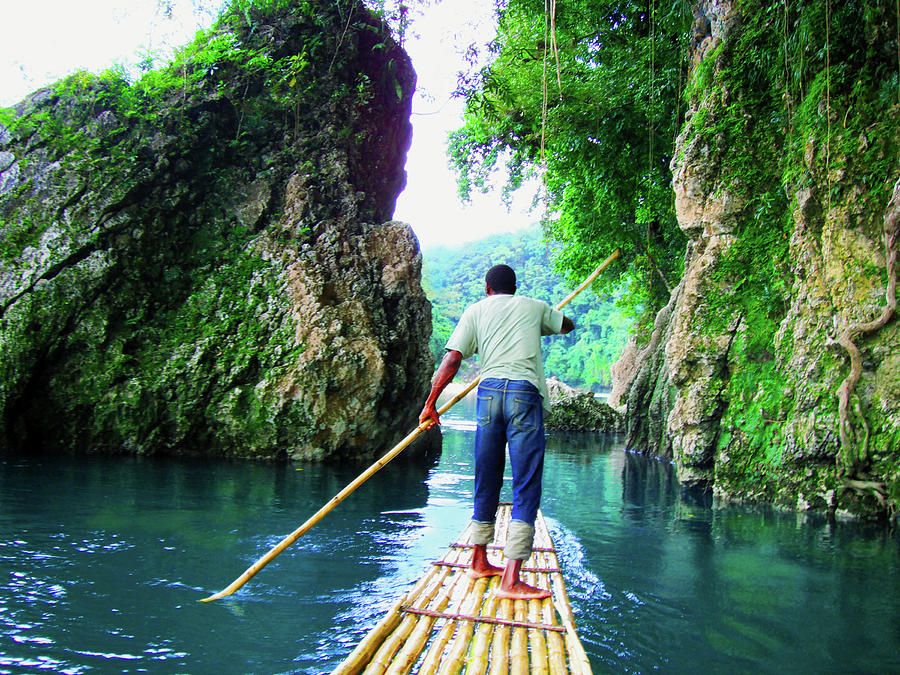 Torrential rains rushing down from the Blue Mountains feed the Rio Grande River. Bamboo rafts were originally used to transport produce, especially bananas, from the interior of the island.